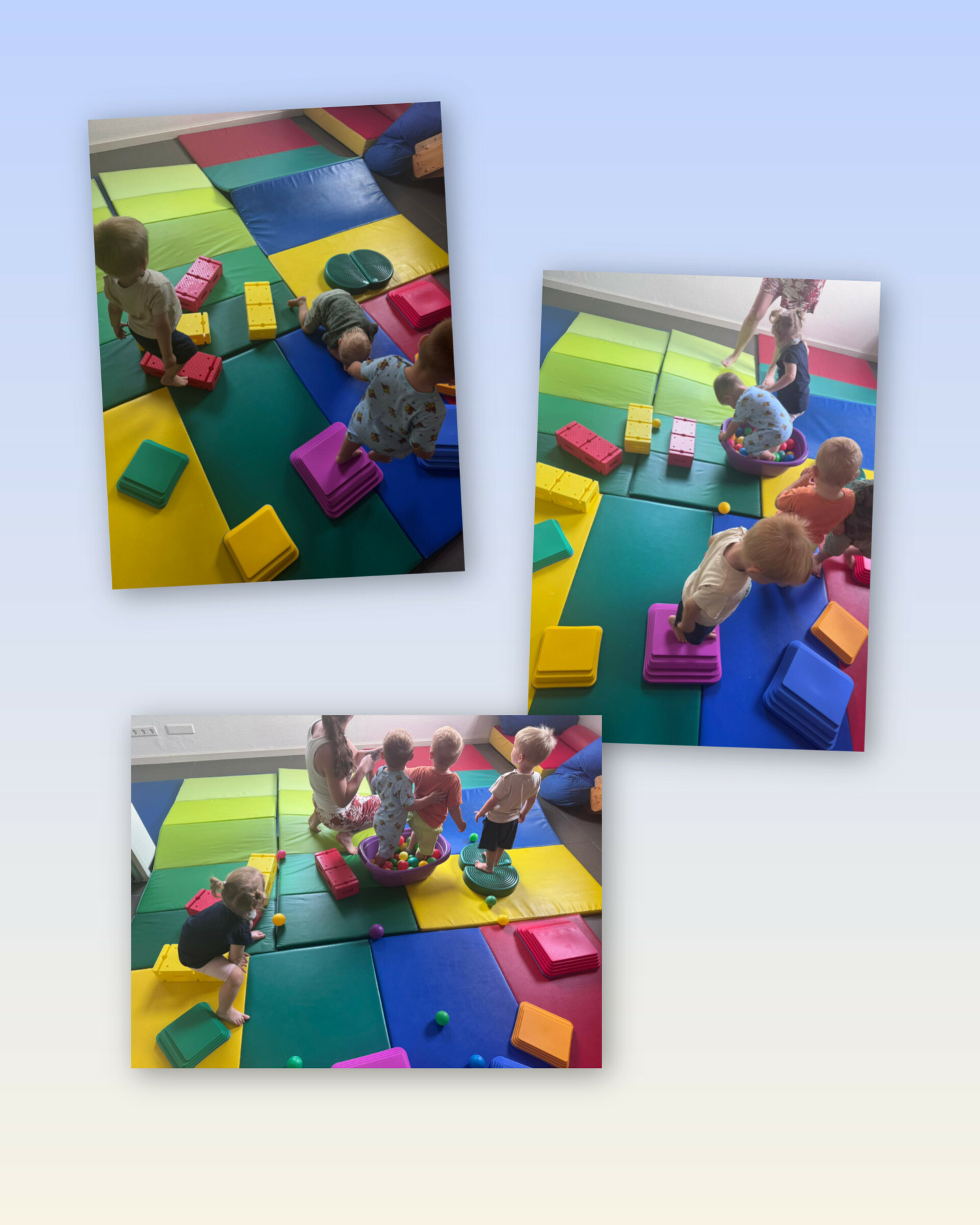 Wenn es draußen regnet, bewegen wir uns im Flur. Hier wird oft eine Bewegungsbaustelle aufgebaut und die "Kleinen Weltentdecker" haben viel Spaß!
