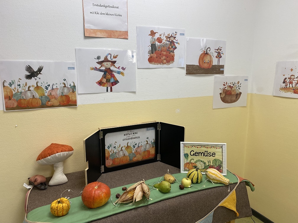Am 7.10.2025 haben wir mit den Kindern einen Erntedankgottesdienst gefeiert. Wir haben Gott für alle die Gaben, die er uns schenkt hat, gedankt.