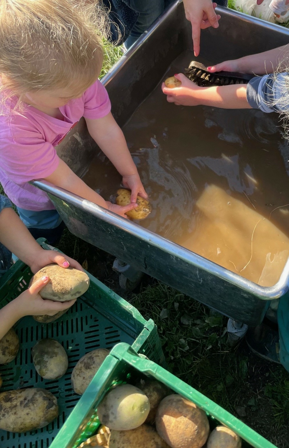 Am vergangenen Mittwoch war es so weit - wir haben unsere Kartoffeln geerntet. Im Frühjahr haben wir sie gepflanzt, im sommer gestaunt wie die Pflanzen gewachsen sind und nun endlich haben wir die Kartoffeln geerntet. Auch die Hühner haben wir wieder besucht und unsere frischen Kartoffeln nicht nur ausgebuddelt sondern auch gewaschen, geschnippelt und frisch vom Feuer als leckere Bratkartoffeln genossen. Wieder hatten wir einen wunderschönen Tag auf dem Hof, haben neues gelernt und fleissig mit angepckt. Wenn Sie sich solche Tage auch für Ihre Kinder wünschen - wir haben noch Plätze frei ; )