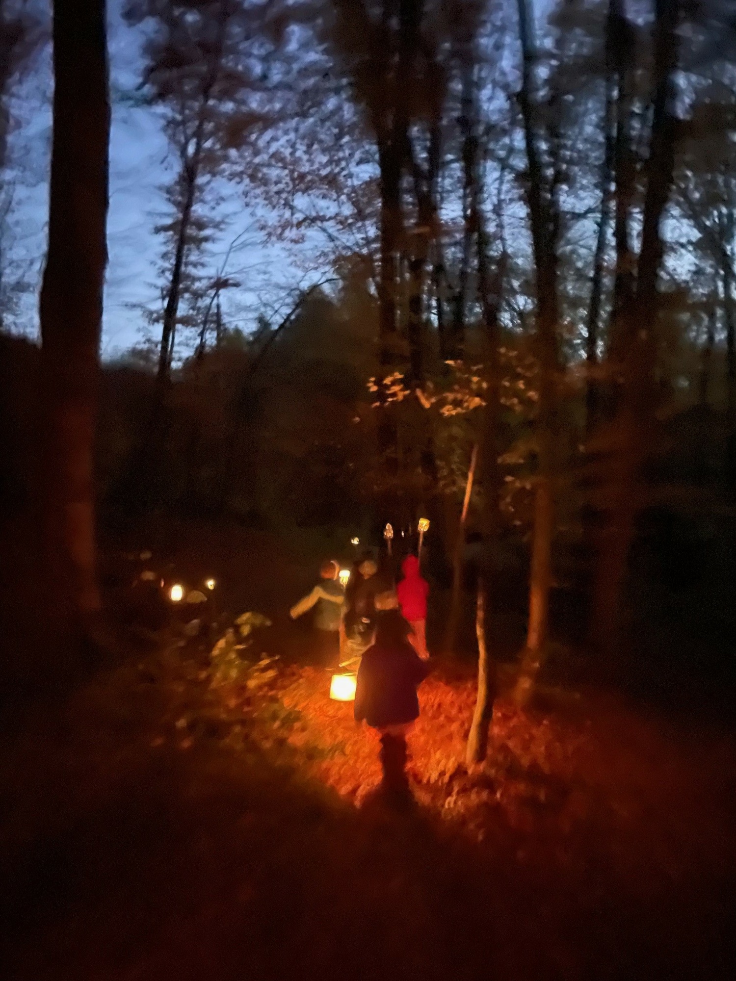 Nun ist schon etwas Zeit vergangen, seit wir am 7. November 2025 bei uns im Wald St. Martin gefeiert haben. Wir haben uns zur Dämmerung mit allen Familien, auch Freunden und Großeltern, an unserem Bauwagen getroffen. Zuerst haben wir gesungen und natürlich auch ganz traditionell ein Martinsspiel gezeigt. Danach haben alle Kinder ihre Laternen bekommen und die Kerzen wurden angezündet. Gemeinsam zogen wir, als es langsam dunkelte, durch unseren wunderschönen Langenhorster Wald. Immer wieder hielten wir an um gemeinsam zu singen, begleitet von Frau Küppers mit der Querflöte. Als wir nach einer großen Runde und vielen Liedern am Platz zurückkehrten, hatten fleißige Eltern schon das große Lagerfeuer entfacht und der Abend konnte gemütlich bei Punsch, Weckmännern und Glühwein ausklingen.