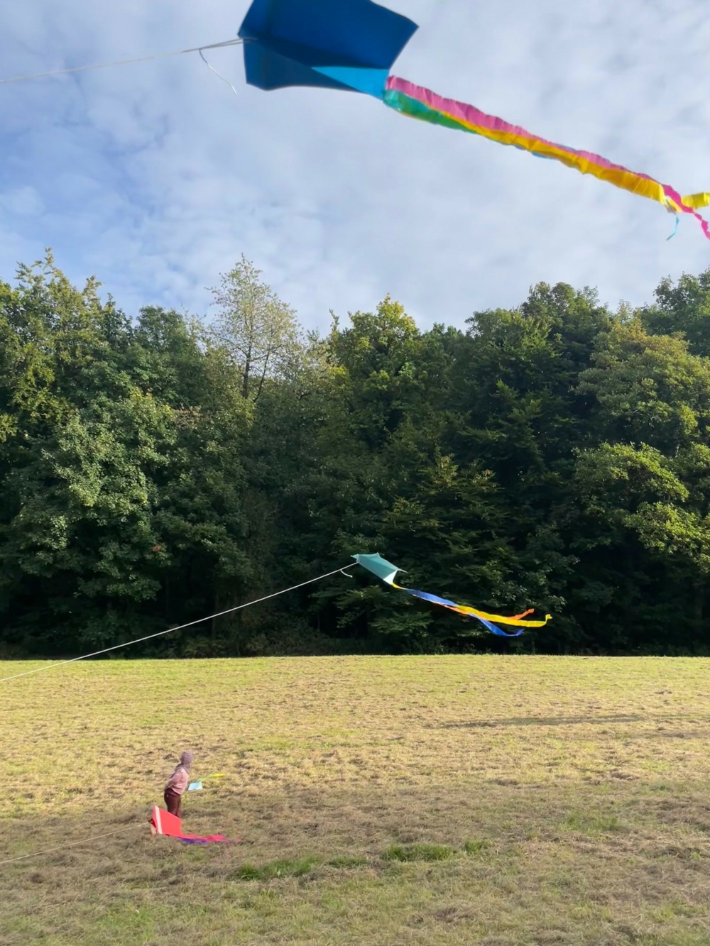 Am Freitag haben wir den Herbst mit einem bunten Drachenfest auf der Hasenwiese im Langenhorster Wald begrüßt. Unsere Waldkinder haben schon länger fleißig Herbstlieder gesungen und die Eulen auch noch schöne Herbstgedichte eingeübt. Das Lernen hat sich gelohnt und es gab ein schönes Programm für unsere Gäste. Anschließend wurde getestet ob die selbstgebastelten Drachen auch flogen. Ausserdem hatten alle etwas für ein herrliches Picknick beigesteuert und es blieb auch noch Zeit, dass sich alte und neue Familien ein bisschen kennenlernen konnten. Das Wetter hätte besser nicht sein können, während es am Morgen noch ganz windstill war, freuten wir uns am Nachmittag über den aufkommenden Wind und strahlenden Sonnenschein. Der perfekte Start in eine neue Ttadition, alle waren sich einig - im nächsten Jahr wieder ; )